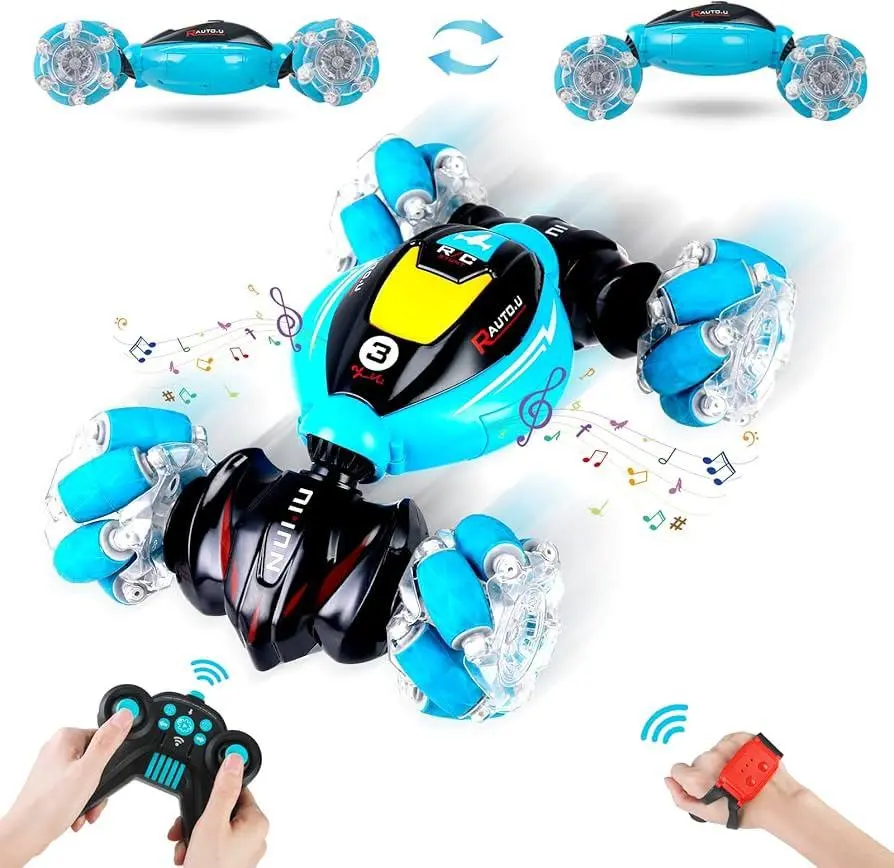 🚗 Se mueve en todas las direcciones: adelante, atrás, gira y da vueltas 360° 💡 Luces LED brillantes en las ruedas 🎶 Efectos de sonido 🌀 Diseño flexible con sistema de torsión que permite saltos y giros locos ⚙️ Doble modo de control (control remoto o gestos con la mano) 🔋 Batería recargable incluida