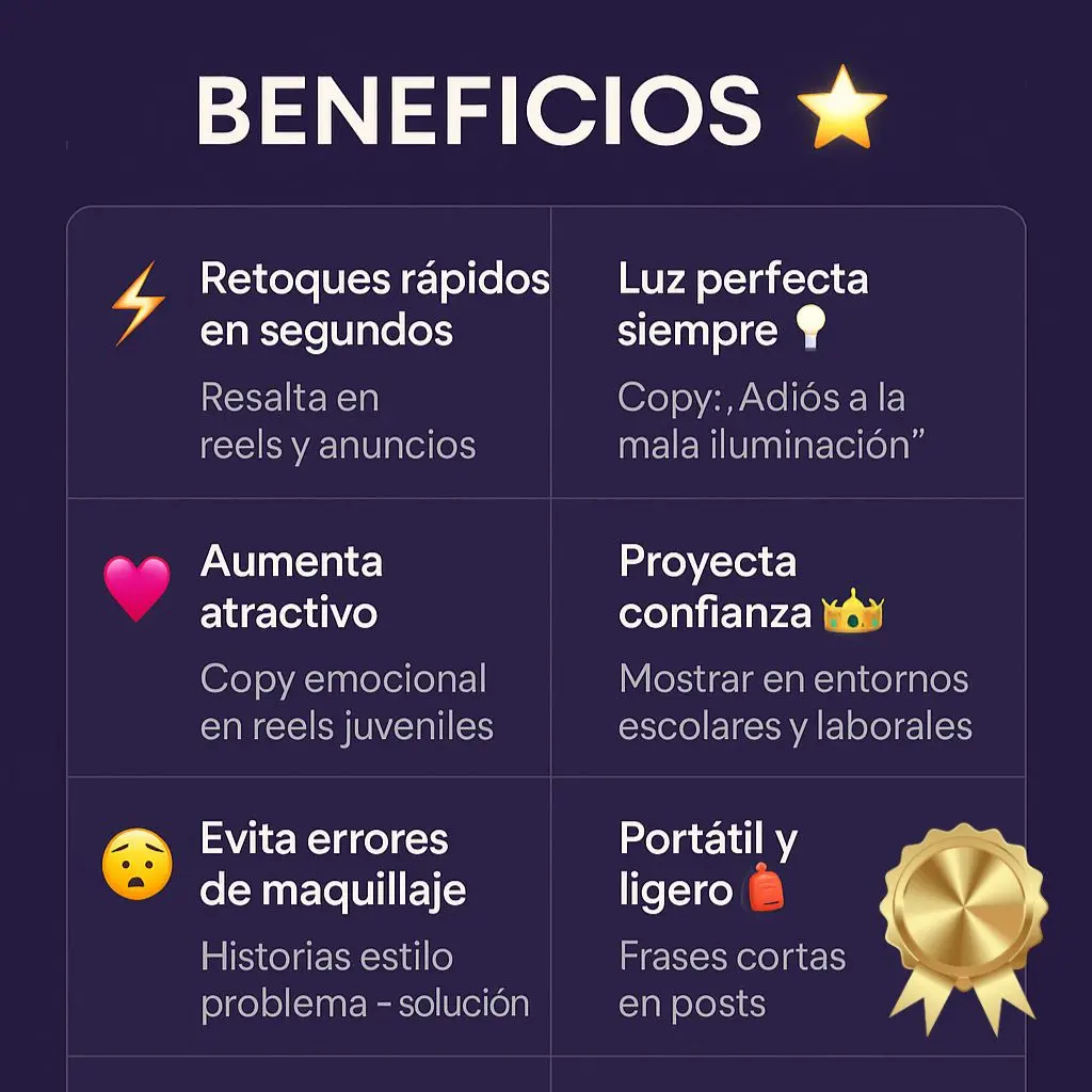 Desde entonces, Sofía no sale sin su espejo iluminado. Su secreto para lucir siempre radiante está en ese pequeño accesorio que le da confianza en cualquier lugar.