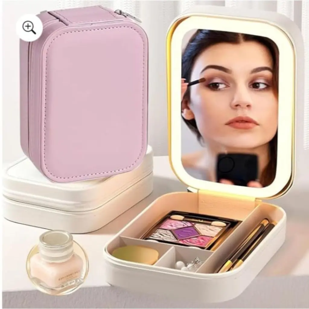 Con nuestro espejo de maquillaje iluminado portátil, lleva la luz ideal contigo a donde vayas ??